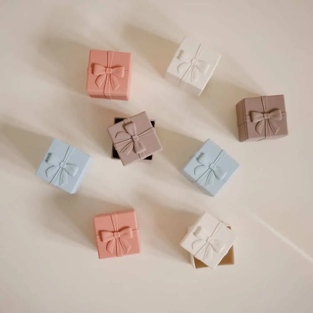 Objavte radosť z kreatívnej hry s darčekovou sadou Mushie Mix & Match Present Toy Set, ktorá podporuje fantáziu, jemnú motoriku a rozpoznávanie farieb.