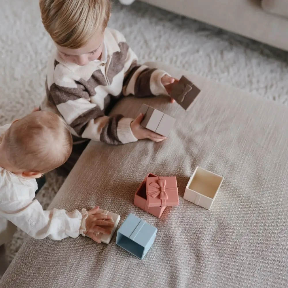 Vyrobené z mäkkého a bezpečného potravinárskeho silikónu, krabičky sú ideálne na stohovanie, kombinovanie a hranie bez obmedzení – doma, v škôlke či na cestách. Sada v jemných farbách zároveň pôsobí esteticky a vkusne v každom detskom kútiku.