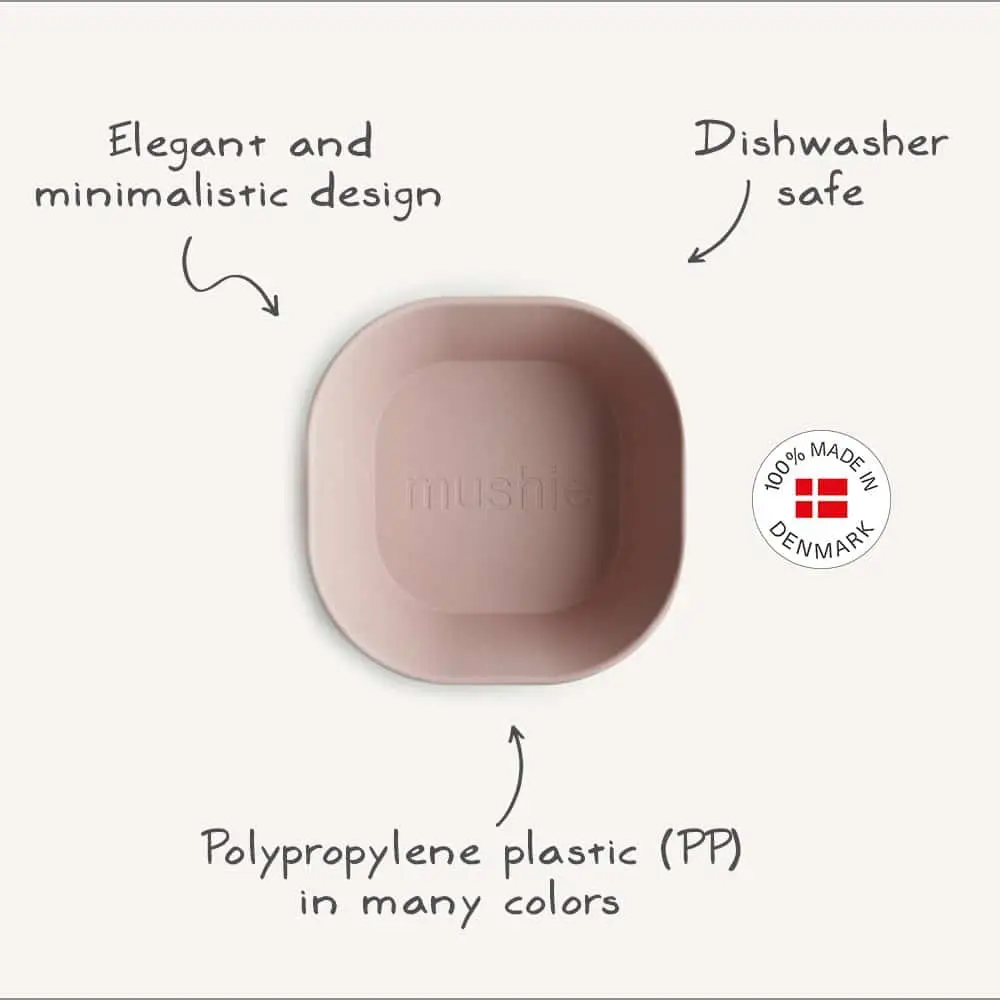 Zoznámte svojho drobca s prvými pevnými jedlami pomocou hranatej misky Mushie Dinner Bowl v odtieni Dusty Rose.