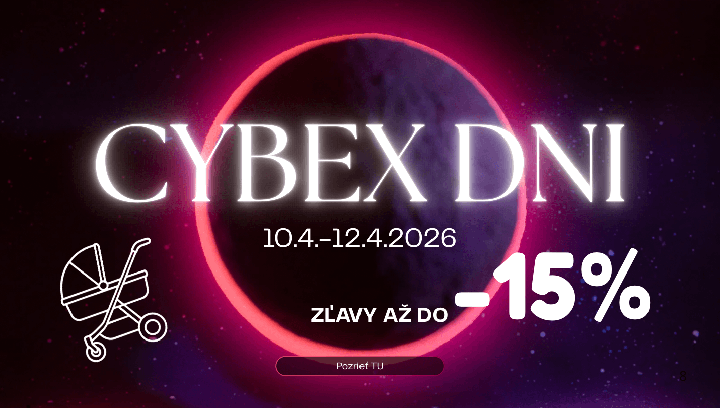 🗓️ Len od 10.4.2026 do 12.4.2026 u nás prebiehajú špeciálne Cybex dni – obdobie plné zliav na obľúbené kočíky, autosedačky a príslušenstvo značky Cybex!