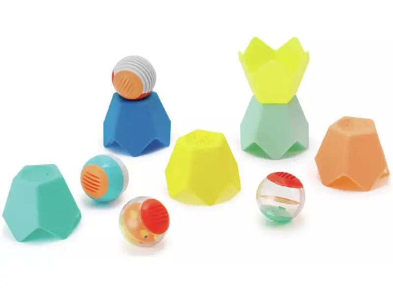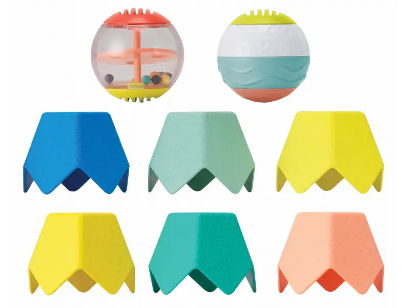 Súprava multifunkčných loptičiek a téglikov ponúka mnoho rôznorodých aktivít a spôsobov hry. Loptičky a tégliky je možné jednoduchým spôsobom spájať dohromady a vytvárať tak stále nové, originálne konštrukcie. Každá loptička ponúka inú textúru, niektoré sú naplnené korálkami, ktoré pri pohybe hrkajú.
