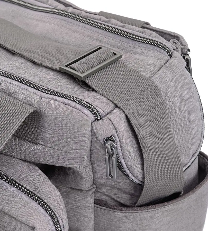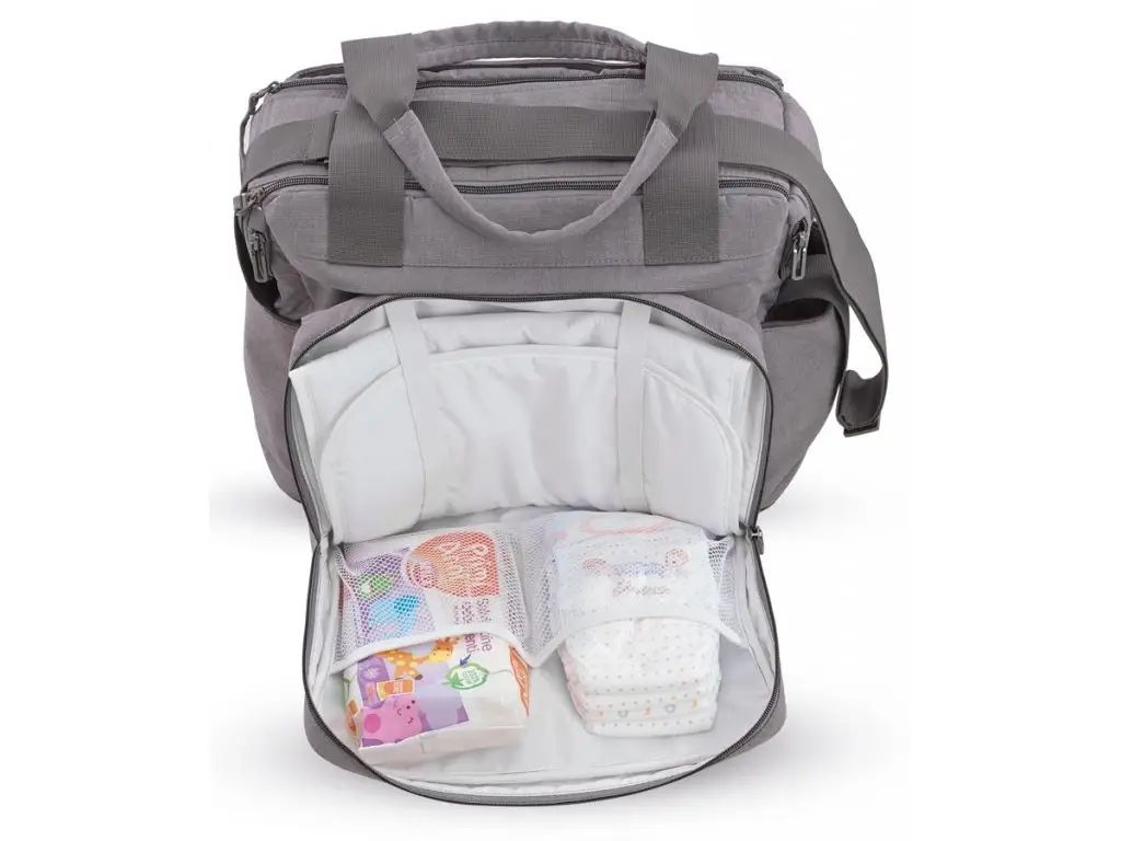 MULTIFUNKČNÁ TAŠKA s veľkými priehradkami, ktorá pojme všetko, čo rodičia pre svoje dieťa na cestách potrebujú mať po ruke. Vybavená prebaľovacou podložkou a odnímateľnou priestrannou listovou kabelkou, ktorá je ideálna pre krátke výlety.