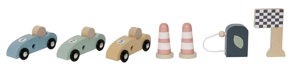Celý set je vyrobený z dreva, má nadčasový dizajn a jemné tlmené farby, ktoré krásne zapadnú do každého detského izbičky. Deti si pri hre precvičujú jemnú motoriku, spoluprácu a zároveň nechávajú priestor fantázii. Ideálne pre malých milovníkov rýchlosti od 3 rokov – či už ide o priateľské preteky alebo napínavý šampionát.