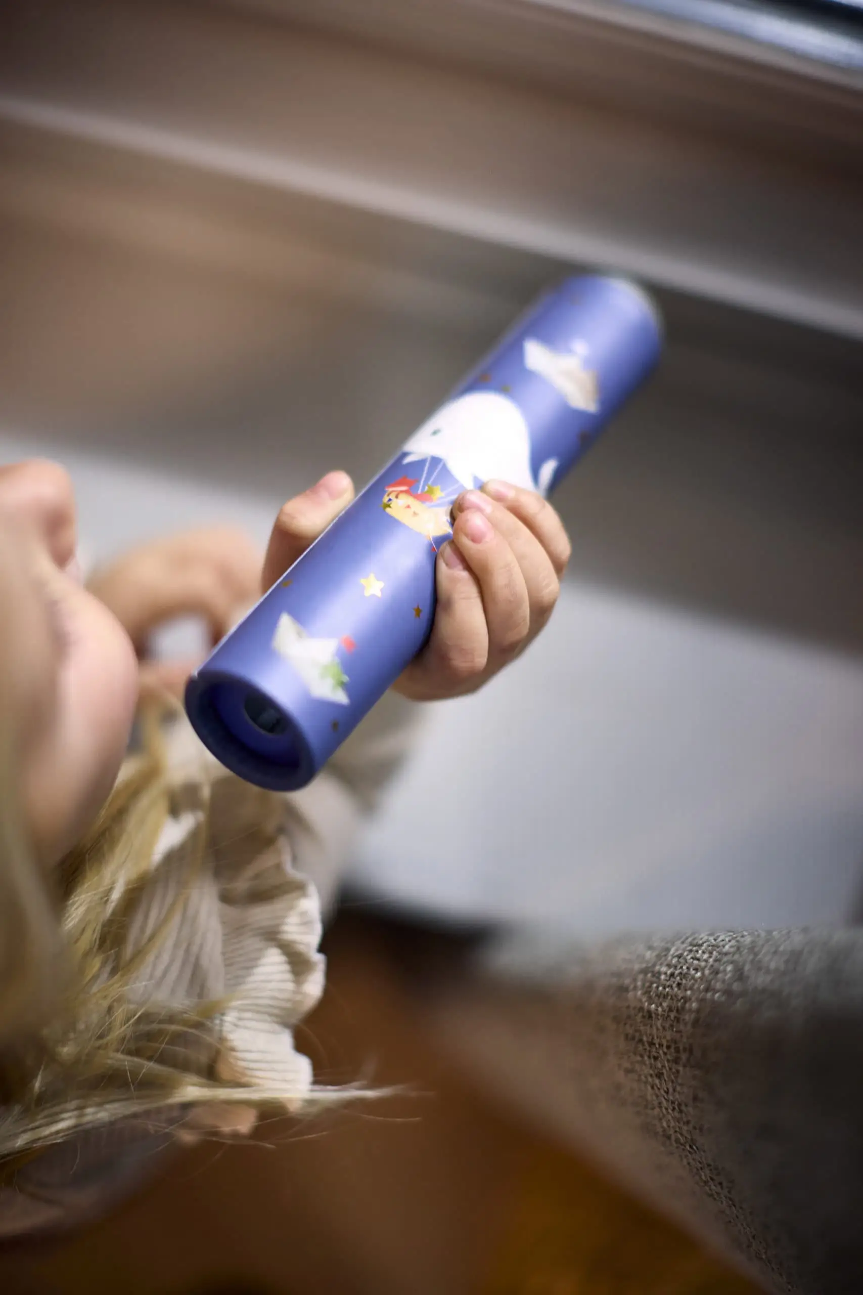 Kaleidoskop je krásne zabalený v pôvabnej darčekovej krabičke, takže je dokonalým darčekom pre zvedavé mysle. Vďaka nádherným zlatým detailom a očarujúcim potlačiam ide o nadčasovú hračku, ktorá prebúdza tvorivosť a fantáziu.