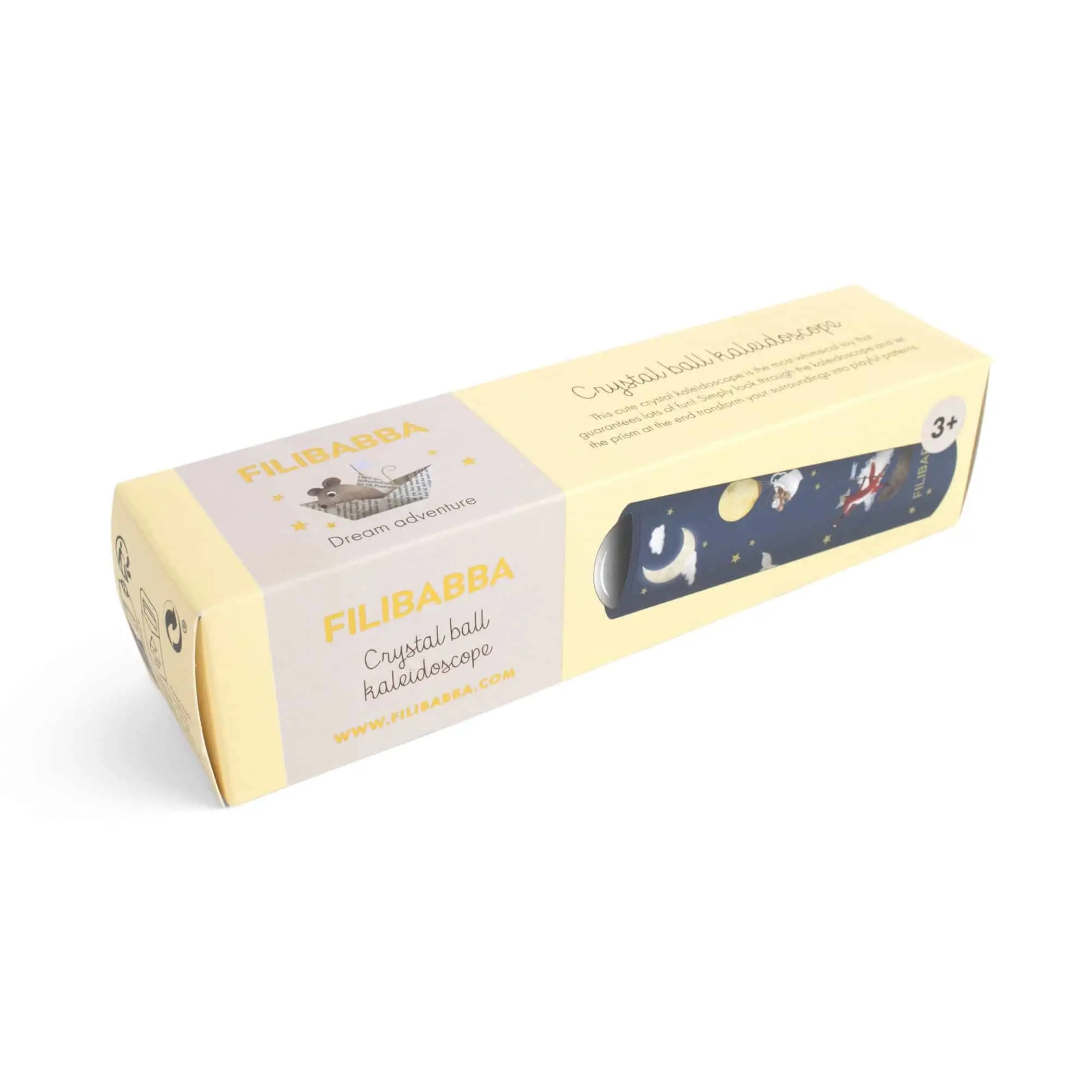 Premeňte obyčajné na výnimočné s čarovným krištáľovým kaleidoskopom FILIBABBA. Táto rozprávková hračka pozýva deti aj dospelých vstúpiť do sveta plného zázrakov. Jemným naklonením hlavy sa hranol na konci kaleidoskopu premení na fascinujúce vzory, ktoré pretvárajú každodenné okolie na hravé a magické obrazy.