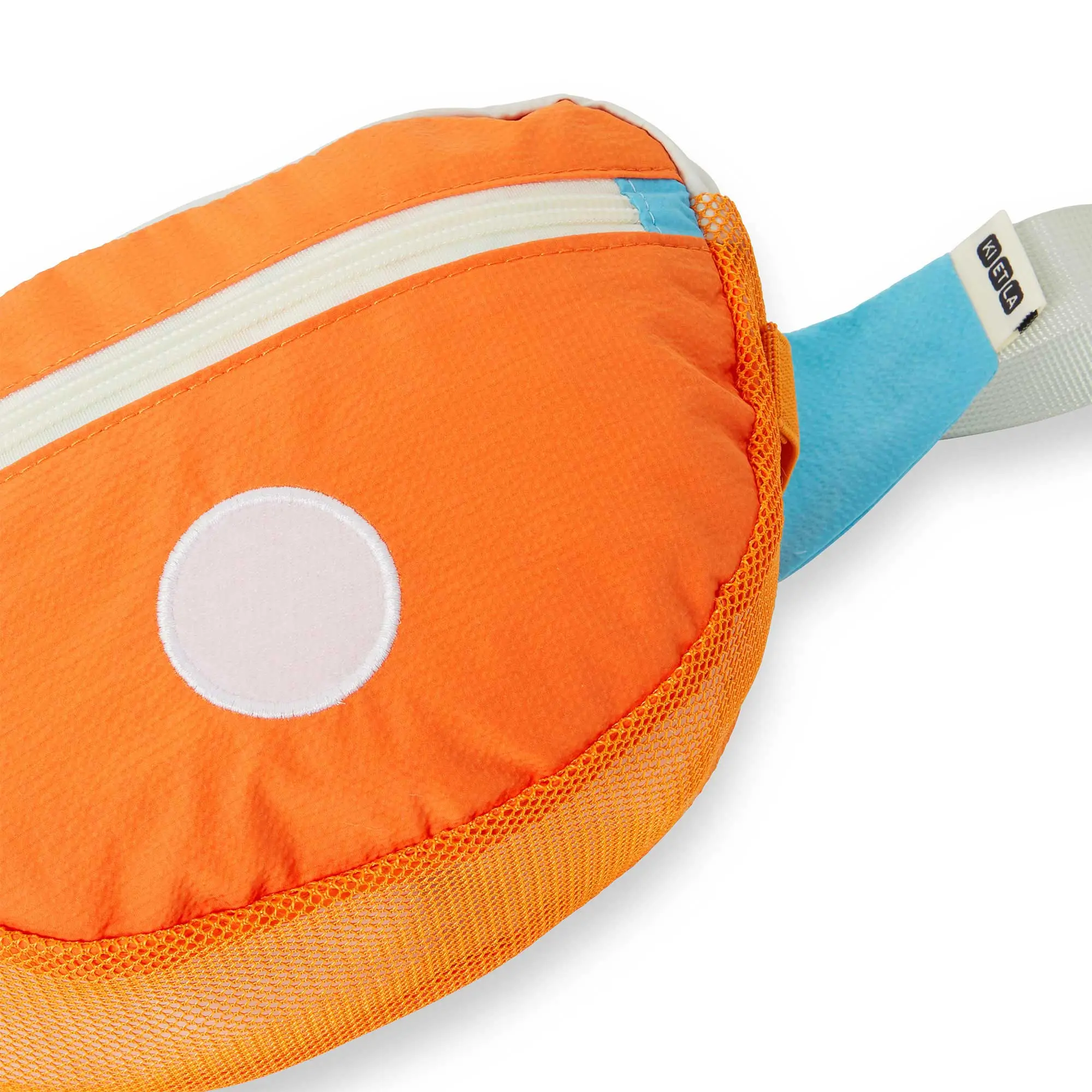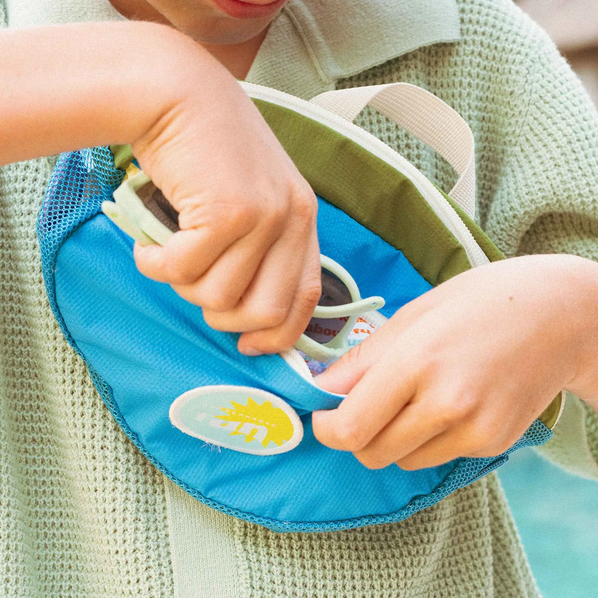 Hlavné vrecko ľadvinky je sieťované a pomáha odvádzať piesok a vlhkosť. Vo vnútri vrecka je štítok, na ktorý môžete napísať meno vášho dieťaťa. Predné vrecko je podšité mikrovláknom a má všitú handričku na čistenie slnečných okuliarov KiETLA. Ľadvinka má na boku aj malú gumičku, ktorá je ideálna na uterák alebo pripevnenie kľúčenky.