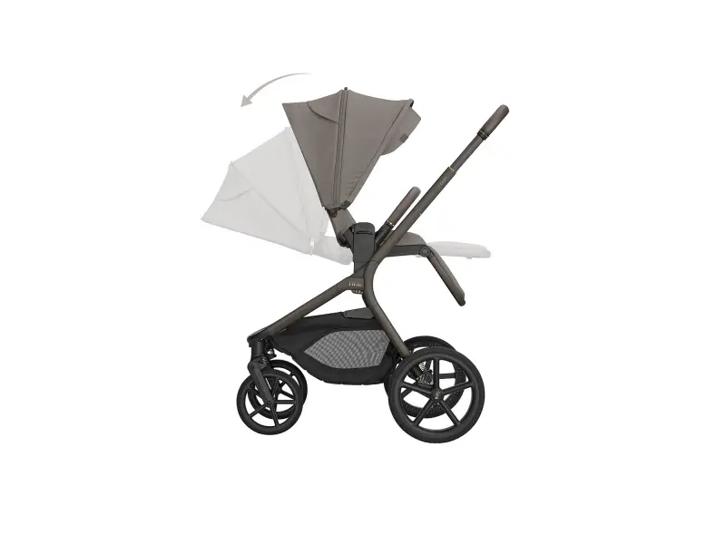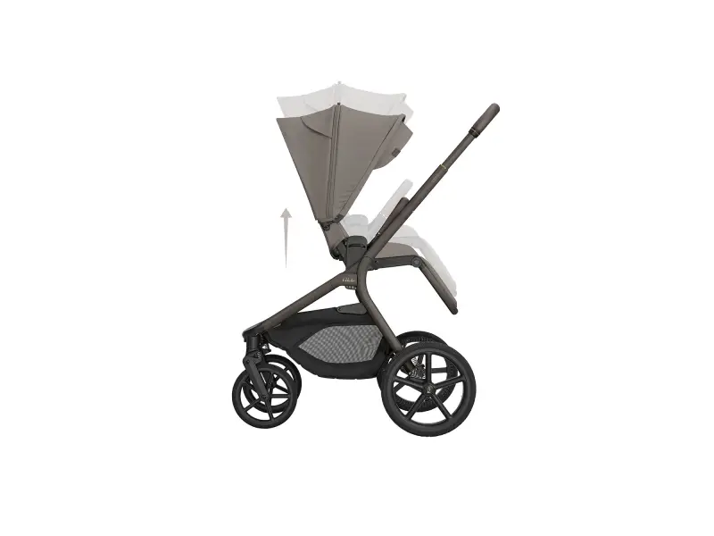 Športové sedenie je možné nasadiť po aj proti smeru jazdy a vďaka tlačidlám s pamäťou ho uvoľníte z podvozku pohodlne jednou rukou. Výšku sedenia môžete nastaviť do dvoch polôh pre prispôsobenie kočíka podľa výšky rodiča. Odnímateľné madlo pred dieťaťom je otočné o 360 ° pre ľahkú manipuláciu s dieťaťom a potiahnuté príjemnou ekokožou.