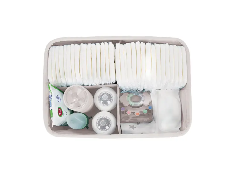 Praktický prenosný organizér v krásnom textilnom prevedení s vnútornými priehradkami vám pomôže prehľadne uložiť toaletné a prebaľovacie potreby pre vaše bábätko. Vďaka držadlám sa ľahko prenáša a môžete ho tak mať vždy po ruke kdekoľvek potrebujete. Odnímateľná prepážka umožnuje voľbu členenia vnútorného priestoru.