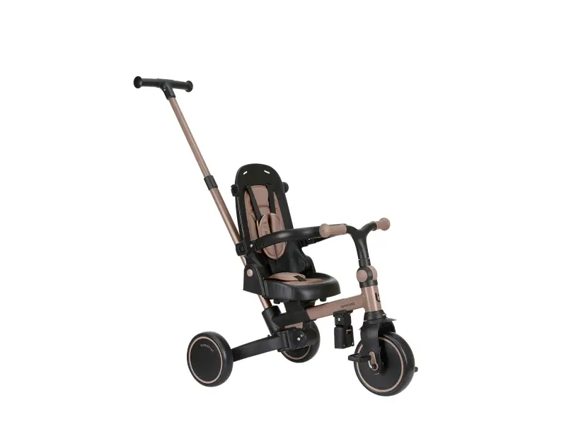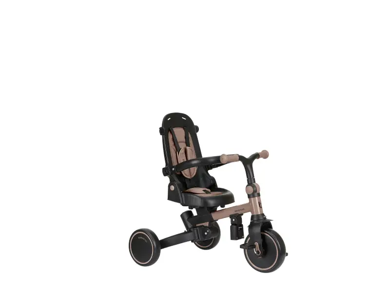 Pre maximálne bezpečie je trojkolka vybavená 5-bodovým pásom, odnímateľným bezpečnostným madlom a nastaviteľnou strieškou, ktorú je možné podľa potreby odňať. Nechýba sklápacia opierka chrbta nastaviteľná do 4 polôh, nastaviteľné riadidlá a otočné sedátko.