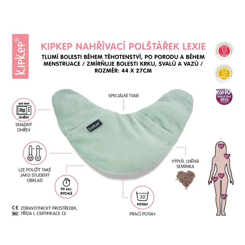Nahrievací vankúšik navrhnutý špeciálne pre ženy. Prirodzene zmierňuje bolesti (menštruačné kŕče, bolesti dolnej časti chrbta, bolesti väzov atď.), vďaka špeciálnemu tvaru sa dokonale a pohodlne prispôsobia boľavej oblasti. Teplo a rozložená váha uľavuje od bolesti a prináša relaxáciu aj počas tehotenstva.