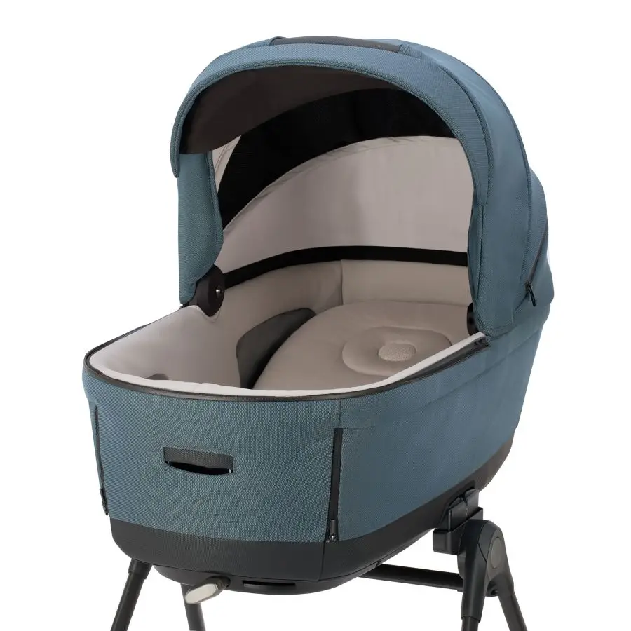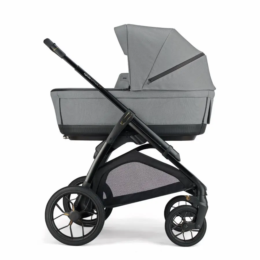 Kombinovaný kočík Aptica XT 4v1 Recline sa skladá z: priestrannej hlbokej vaničky XXL s 5-timi okienkami, matraca, Welcome PadTM, stojana Stand UpTM, autosedačky Darwin Recline Evo R12 košíka, držiaka pohárika a nového odľahčeného adaptívneho podvozku Aptica XT.