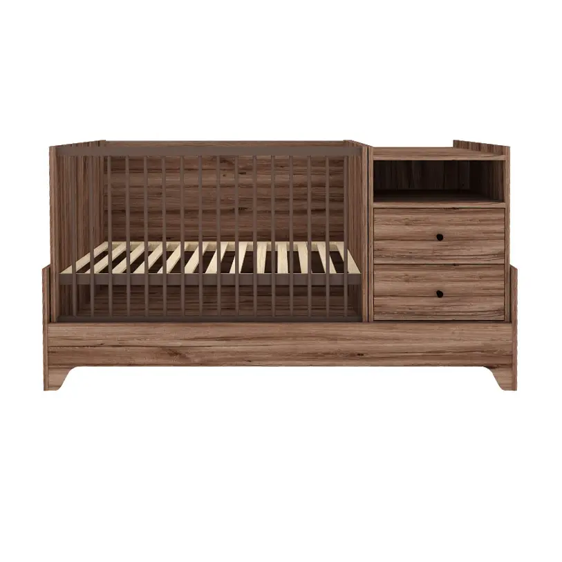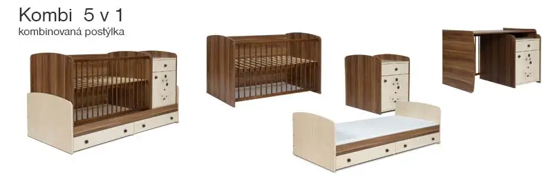 Najvýraznejší kúsok kolekcie Nest Walnut, kombinovaná postieľka, je nielen krásny, ale aj veľmi praktický. Táto premyslene navrhnutá detská postieľka predstavuje priestorovo úsporné riešenie, ktoré v jednom kuse nábytku kombinuje pohodlnú detskú postieľku s veľkým úložným priestorom a miestom na prebaľovanie. Vstavané zásuvky a odkladacie police pomáhajú udržiavať poriadok v potrebách pre dieťa, takže plienky, oblečenie, krémy alebo hračky sú vždy po ruke. Rošt z masívu nastavíte do troch polôh, ako sa dieťa vyvíja a pridáva pohybové zručnosti, ho budete znižovať.