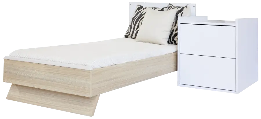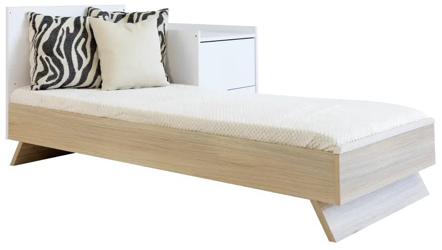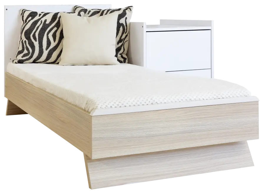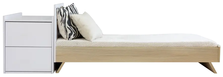 Najnovší člen kolekcie Sienna zaujme nielen svojim pútavým dizajnom, ale aj rafinovanou, premyslenou funkčnosťou. Táto multifunkčná postieľka, ktorá stojí na elegantných nohách z dubového dreva a je spárovaná s panelom v bielej farbe, vytvára dokonalú rovnováhu medzi prírodným šarmom a moderným štýlom.