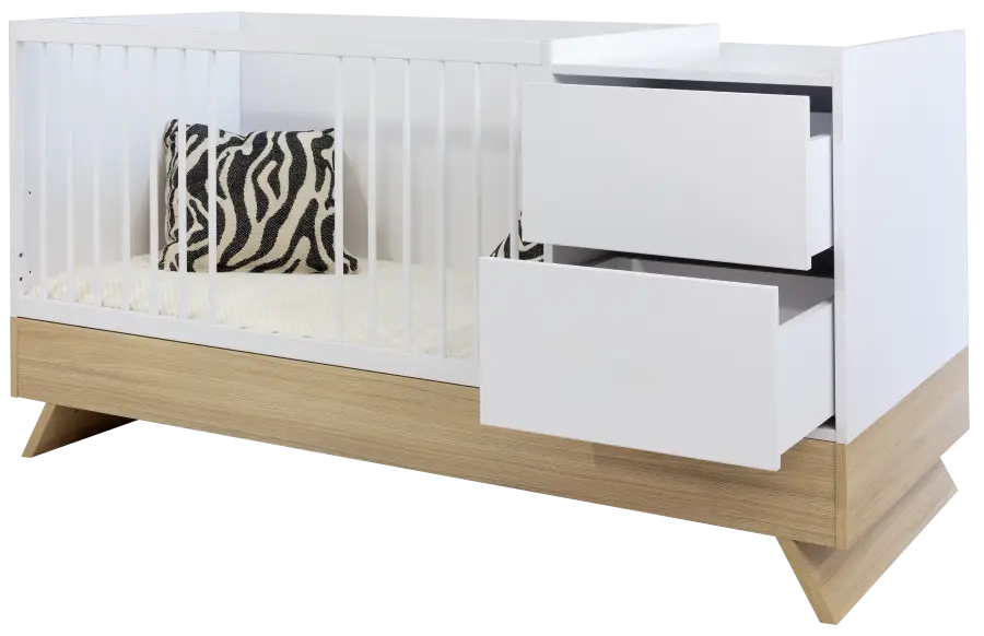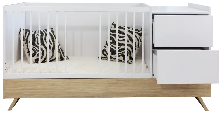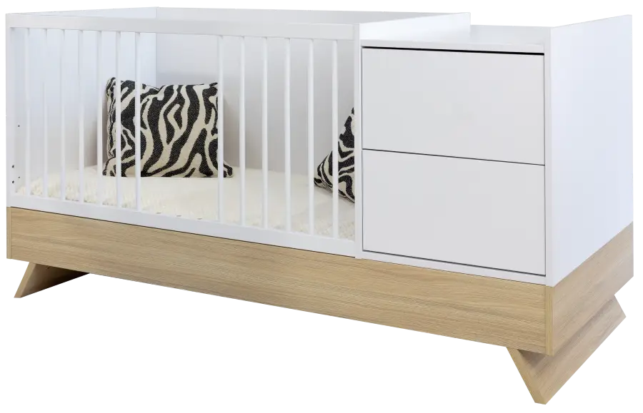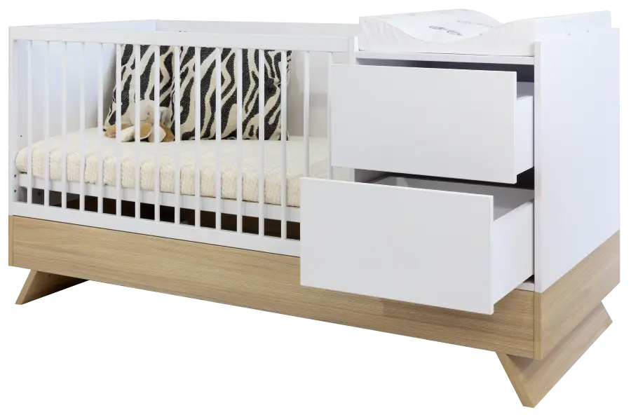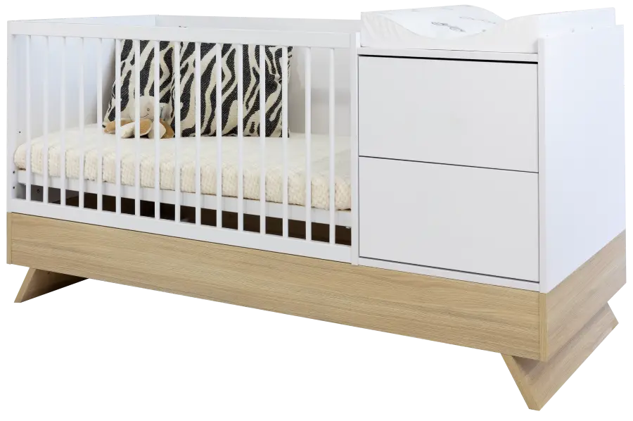 Vďaka funkcii 3 v 1 je navrhnutá tak, aby rástla s vašim dieťaťom: začína ako detská postieľka s komodou, potom sa ľahko zmení na väčšiu detskú posteľ a praktickú skrínku – zostane milovanou časťou detskej izby po mnoho ďalších rokov.