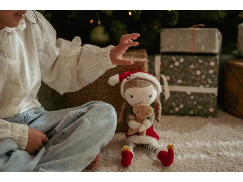 Bábika je vyrobená z jemného polyesteru a dodáva sa v elegantnej darčekovej krabičke, takže poteší aj ako originálny vianočný darček. Je súčasťou špeciálnej vianočnej kolekcie doplnkov a hračiek Little Dutch.