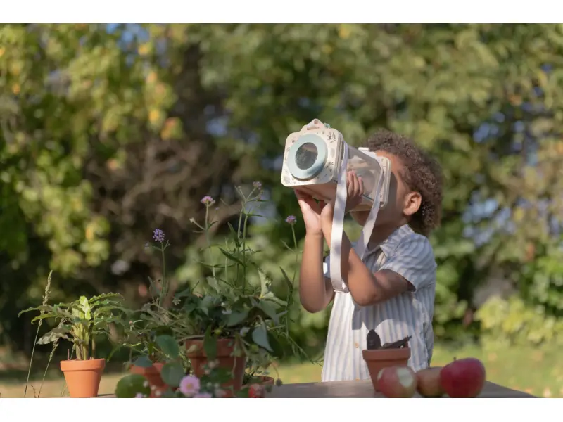Unikátna pomôcka pre malých zvedavých prírodovedcov umožní deťom skúmať zblízka a bezpečne hmyz, ktorý žije na záhrade, na lúke alebo v lese. Veľká lupa slúži aj ako dvierka, ktorými sa hmyz dostane dovnútra boxu. Bočné steny sú zo sieťoviny, aby bol hmyz vo vnútri v bezpečí a mohol dýchať. Popruh umožňuje ľahké nosenie na krku s voľnými rukami. Po skončení pozorovania hmyz môžete bez problémov vypustiť späť do prírody, kam patrí!