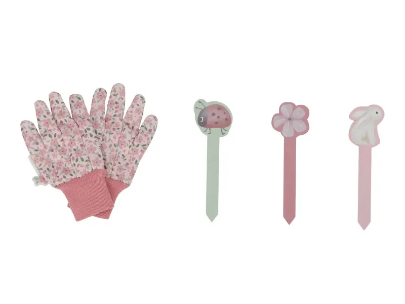 10-dielna sada náradia v krásnom prevedení obsahuje všetko, čo malá záhradníčka či záhradník potrebujú: kanvičku na zalievanie, záhradnícke rukavice, dve lopatky a hrabličky v kvalitnom prevedení z odolného kovu s drevenou rukoväťou a tri zapichovacie drevené menovky. Všetko je uložené v praktickej pevnej taške z bavlneného plátna s množstvom vreciek pre prehľadné ukladanie a jednoduché prenášanie. Náradie aj taška sú zdobené krásnou potlačou motívov zo života na záhrade.