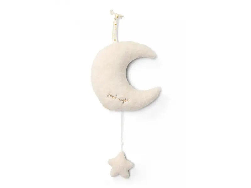 Závesný mesiac je súčasťou dizajnovej kolekcie hračiek a doplnkov Little Dutch Newborn Naturals.