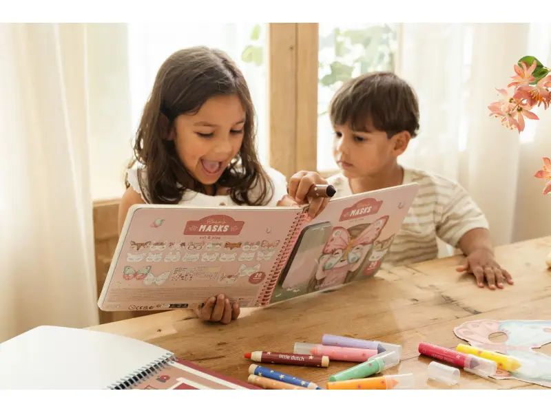 Originálna kreatívna kniha Little Dutch otvára deťom svet fantázie, farieb a hier. Obsahuje 20 krásnych vystrihávacích masiek, ktoré si deti po vystrihnutí dozdobia a použijú pri hraní divadielka či prezliekanie za rôzne rozprávkové postavy. Súčasťou balenia sú bezpečné detské nožnice, vďaka ktorým môžu deti masky vystrihovať samostatne a bez rizika.