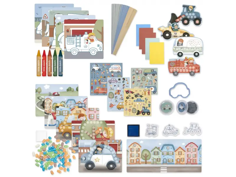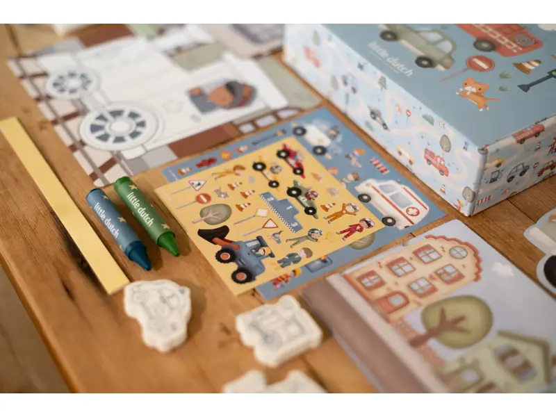 Podporte detskú fantáziu s touto veľkou kreatívnou sadou Little Dutch s tematikou dopravných prostriedkov a života v meste. Škatuľa je plná výtvarných pomôcok, ktoré inšpirujú k tvoreniu, maľovaniu i lepeniu.