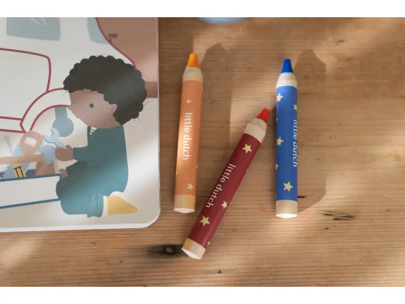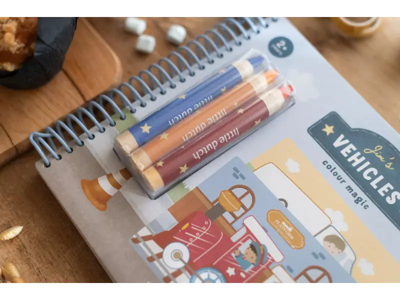 Nechajte svoje dieťa objavovať svet farieb s týmito kúzelnými omaľovánkami Little Dutch. Jemné ilustrácie s tematikou dopravných prostriedkov nabádajú k vyfarbovaniu a rozvíjajú detskú fantáziu. Pastelky rozvíjajú jemnú motoriku a vďaka svojmu tvaru sa ľahko držia.