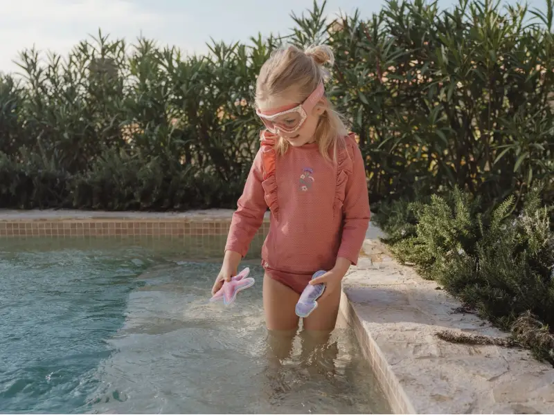 Plavky z UV ochrannej tkaniny s krásnou výšivkou chránia vaše dieťa pred slnkom pri kúpaní pri mori i doma na záhrade. Či už vaše deti milujú skákanie vo vlnách, kúpanie v bazéne alebo si rady stavajú hrady z piesku, v týchto plavkách si môžu bezstarostne užívať celý deň.