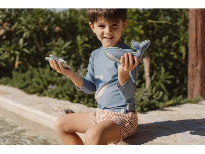 Plavky z UV ochrannej tkaniny s krásnou potlačou chránia vaše dieťa pred slnkom pri kúpaní pri mori aj doma na záhrade. Či už vaše deti milujú skákanie vo vlnách, kúpanie v bazéne alebo si rady stavajú hrady z piesku, v týchto plavkách si môžu bezstarostne užívať celý deň.