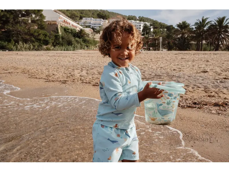 Plavky z UV ochrannej tkaniny s krásnou potlačou chránia vaše dieťa pred slnkom pri kúpaní pri mori aj doma na záhrade. Či už vaše deti milujú skákanie vo vlnách, kúpanie v bazéne alebo si rady stavajú hrady z piesku, v týchto plavkách si môžu bezstarostne užívať celý deň.