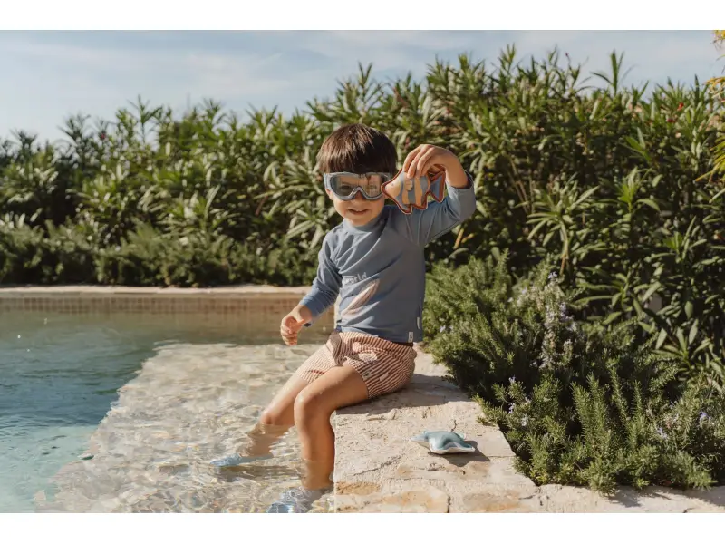 Plavky z UV ochrannej tkaniny s krásnou potlačou chránia vaše dieťa pred slnkom pri kúpaní pri mori aj doma na záhrade. Či už vaše deti milujú skákanie vo vlnách, kúpanie v bazéne alebo si rady stavajú hrady z piesku, v týchto plavkách si môžu bezstarostne užívať celý deň.