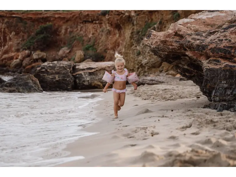 Plavky z UV ochrannej tkaniny s krásnou potlačou chránia vaše dieťa pred slnkom pri kúpaní pri mori aj doma na záhrade. Či už vaše deti milujú skákanie vo vlnách, kúpanie v bazéne alebo si rady stavajú hrady z piesku, v týchto plavkách si môžu bezstarostne užívať celý deň.