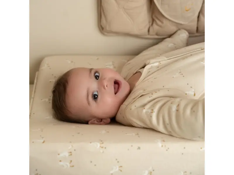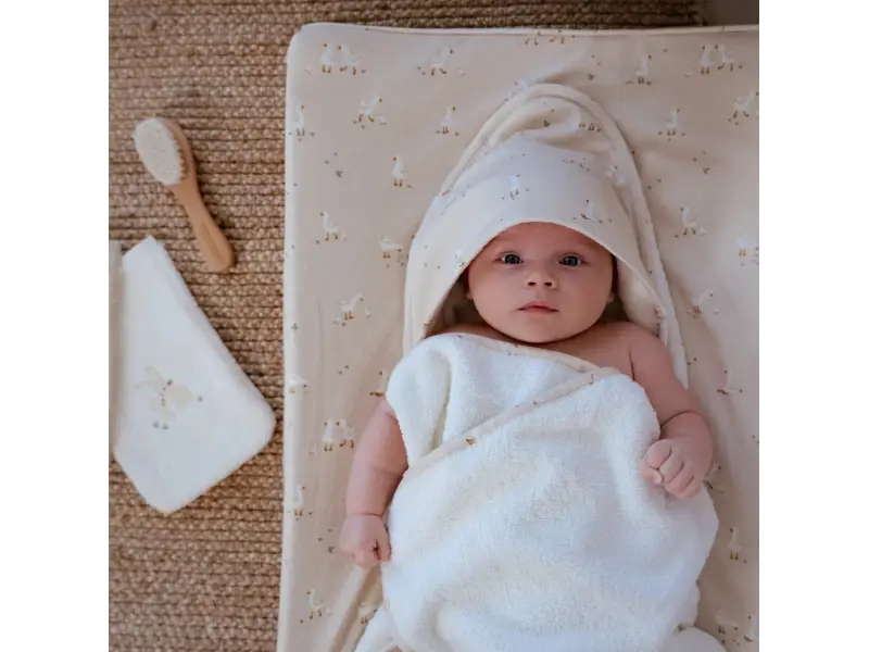 Potah na přebalovací podložku z jemné organické bavlny zpříjemní každé přebalování vašeho miminka. Díky svému roztomilému designu s potiskem husiček promění přebalovací koutek v krásné, útulné místo. Měkký materiál potahu je pro dítě příjemný a zajistí, že ho přebalovací podložka nebude studit při doteku s pokožkou.
