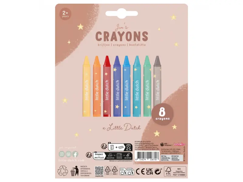 Nechajte svoje dieťa objavovať svet farieb s touto Little Dutch sadou 8 veselých voskoviek v jemných odtieňoch. Trojuholníkový tvar skvele padne do malých detských rúk, podporuje správny úchop a rozvíja jemnú motoriku. Ideálne pre prvé kreslenie, maľovanie aj spoločné tvorenie s rodičmi.