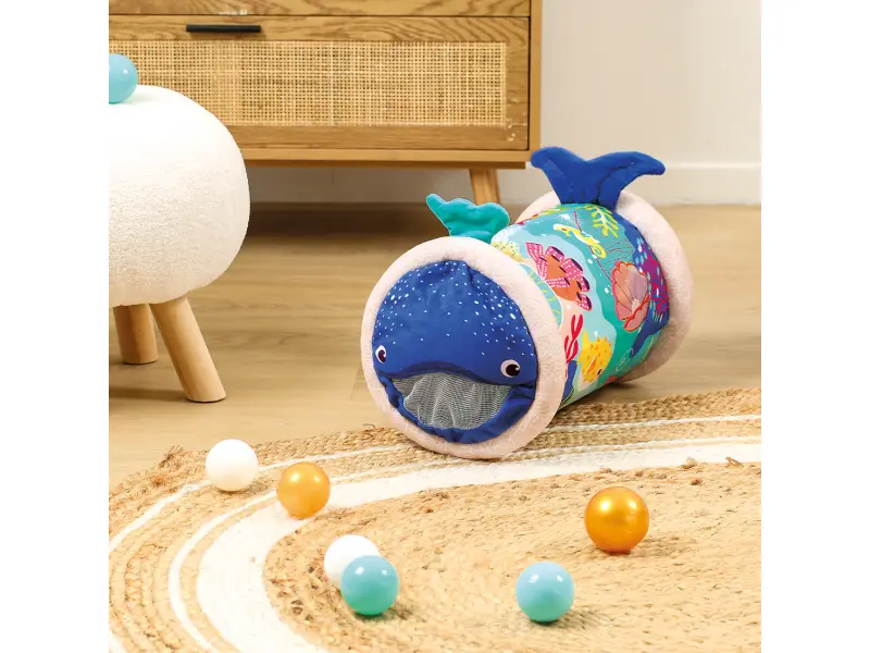 Originálna hračka v tvare valca s množstvom aktivít na skúmanie zabaví dieťa a súčasne podnecuje rozvoj jeho zmyslov a motorických zručností. Vnútri skrýva cinkajúce loptičky, textilný poťah s krásnymi motívmi zo života pod morskou hladinou ponúka rôznorodé textúry, bezpečné zrkadlo aj hrkálku. Dieťa sa o valec môže opierať, liezť cez neho, pretáčať ho alebo ho „doháňať“ pri plazení.