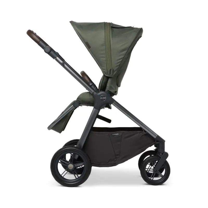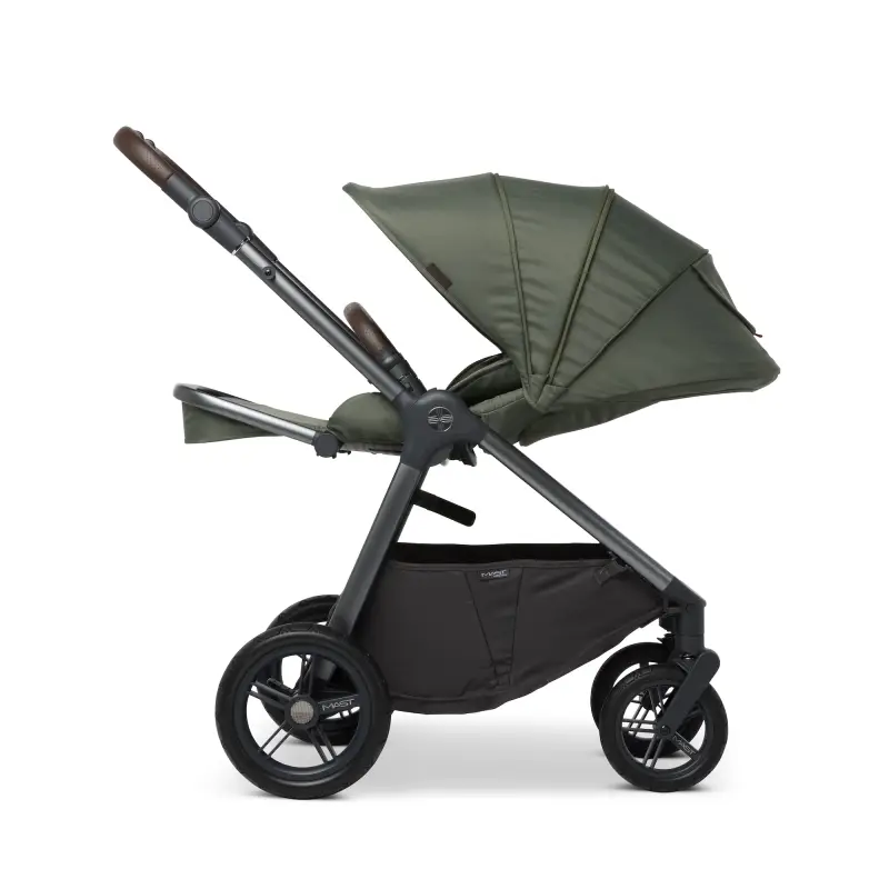 Reverzná sedacia časť kočíka M.5x vám dáva slobodu voľby smeru jazdy - vaše dieťatko tak môže sedieť smerom k rodičom alebo naopak s výhľadom do okolia. Môžete ju sklopiť do 3 polôh, pričom najvyššia poloha umožňuje dieťaťu sedieť vzpriamene.