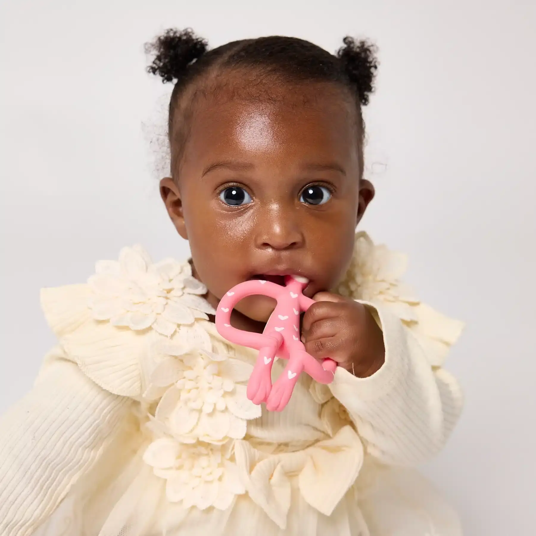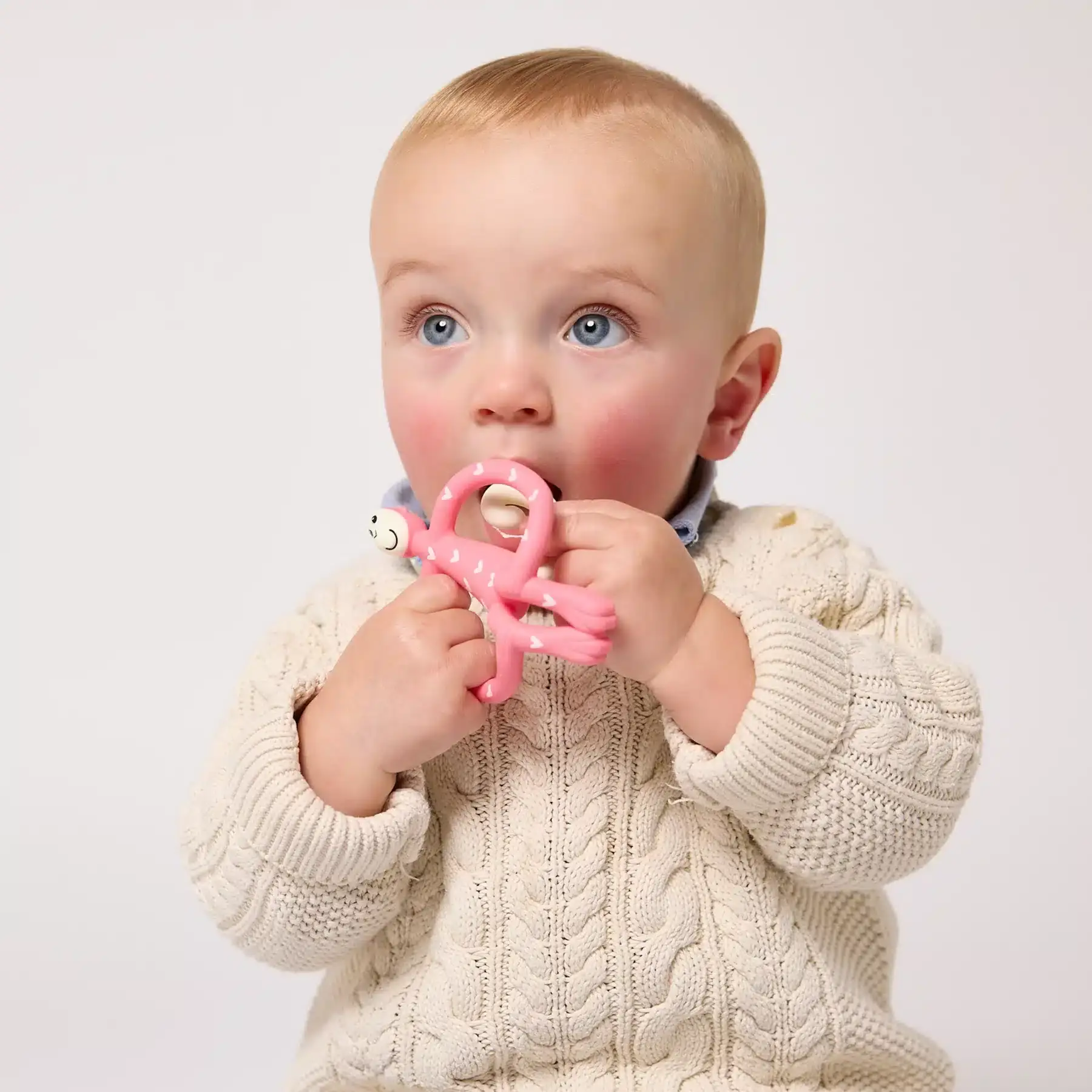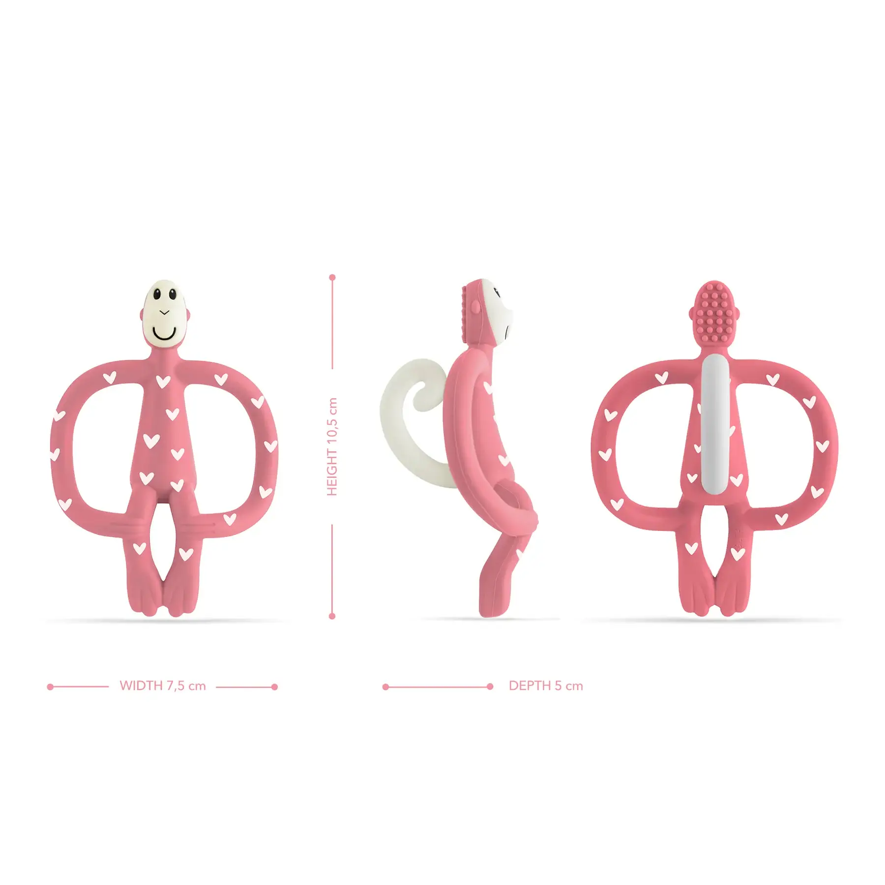 Veselé, ohybné a ideálne do drobných detských rúčok – vaše dieťa môže hryzadlo pohodlne používať a dostať sa priamo k zdroju bolesti. Textúrované výstupky Matchstick Monkey pomáhajú naniesť gél na presné miesta bez potreby prstov.
