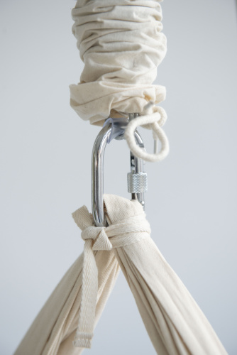 Detská hojdacia sieť je dodávaná s karabínovou bránou, takže kolísku môžete namontovať priamo na dodanú pružinu. Karabína je izolovaná gumou na ochranu pred prípadnými kovovými úlomkami.
