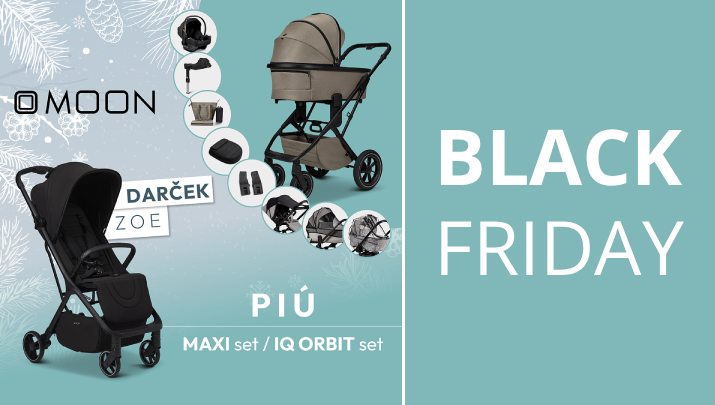 Súprava PIÚ MAXI obsahuje nánožník na športovú verziu, pláštenku, adaptéry na autosedačku, moskytiéru, slnečnú clonu, deku do kočíka Moon, prebaľovaciu tašku vo farbe kočíka, autosedačku Cosmo Black a isofixovú základňu.