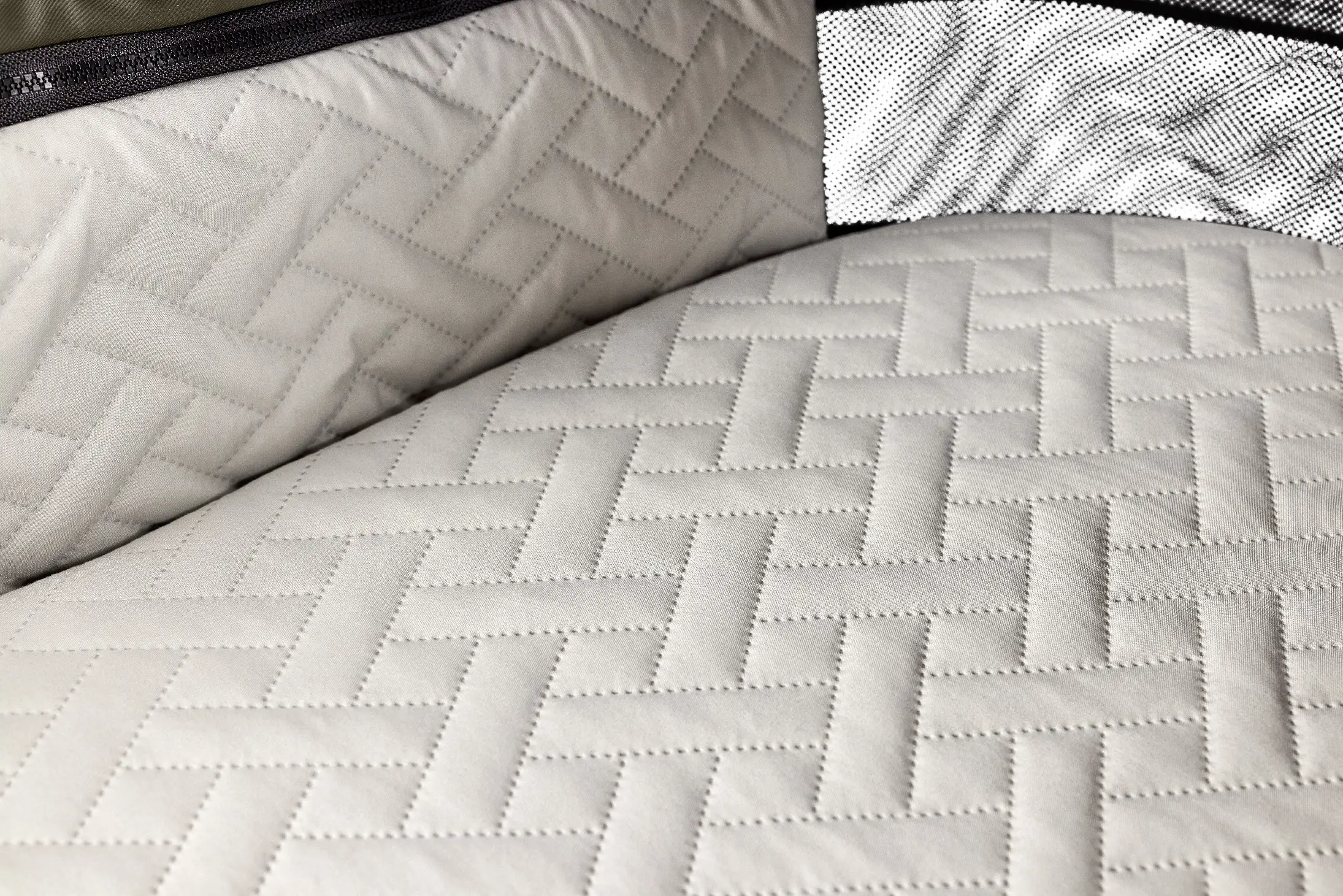 Moderný interiér kočíka vo svetlosivej farbe - elegantný a štýlový vzhľad. Látkový poťah na kolíske - dodáva šmrnc a mäkkosť.