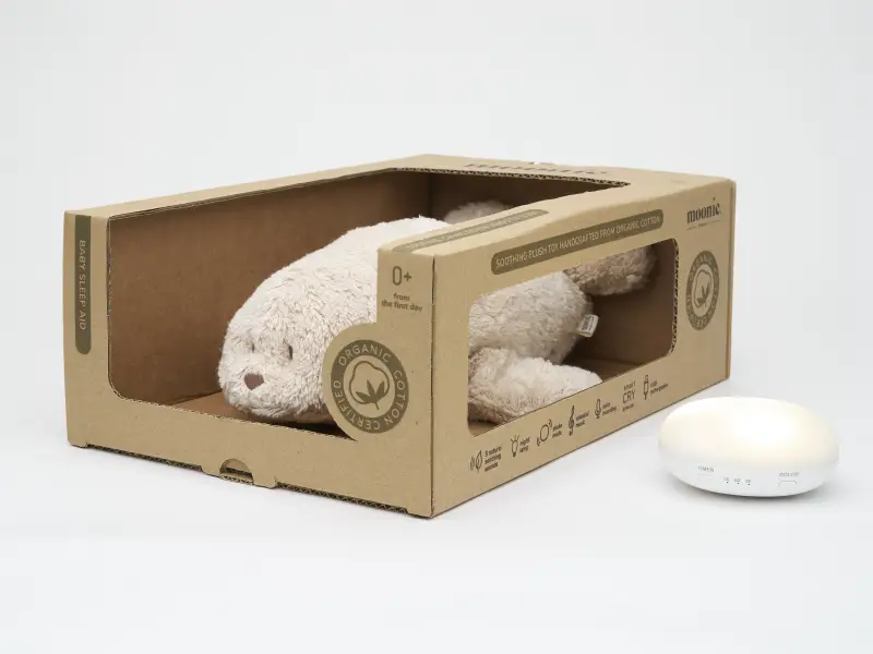 Moonie uspávačik v podobe rozkošného tuleňa s nočným svetlom a relaxačnými zvukmi pomáha bábätku upokojiť sa a ľahšie zaspať. Upokojujúce zvuky pripomínajú dieťaťu prostredie v maternici mamičky pred jeho narodením. Uspávačik ponúka päť prírodných relaxačných zvukov (tlkot srdca, vietor, lesný potok, morské vlny, dážď), kalimba uspávanku, dve klasické uspávanky a umožňuje nahranie vlastného hlasu.