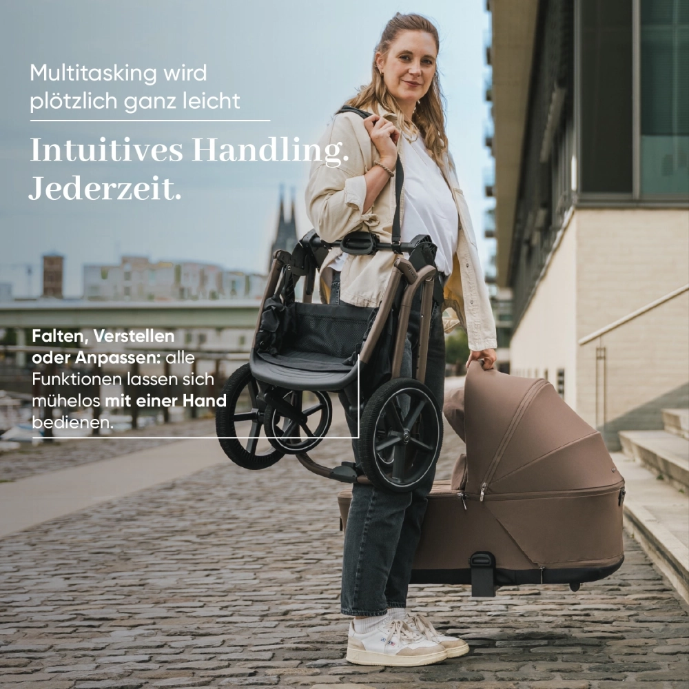 Technológia my junior® MAVI EvoOne™ prináša revolúciu v každodennom používaní kočíka. Po prvýkrát môžete hlbokú vaničku zložiť spolu s rámom do ultrakompaktného skladacieho stavu – bez toho, aby ste ju museli vybrať, bez akýchkoľvek problémov. Vanička, ktorá zmizne.