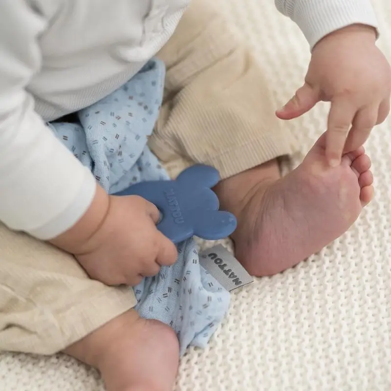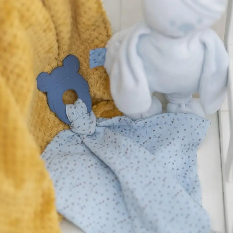 Produkt NATTOU Hryzačka silikónová bez BPA s bavlnenou dečkou 28 x 28 cm blue