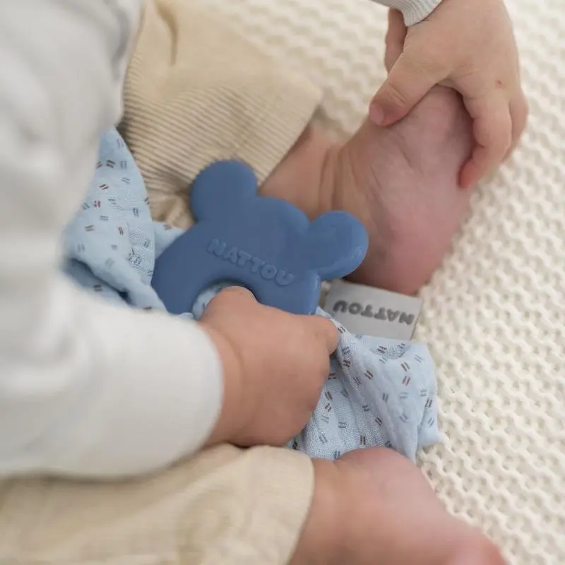 Doručenie NATTOU Hryzačka silikónová bez BPA s bavlnenou dečkou 28 x 28 cm blue