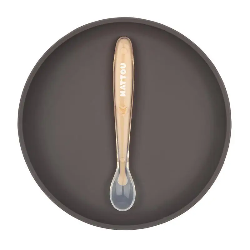 Produkt NATTOU Set jedálenský silikonový 2 ks tanier a lyžička fialovo-oranžový bez BPA