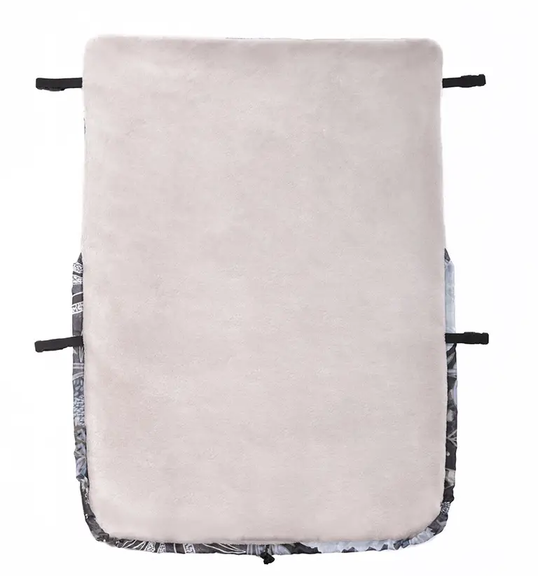 Vonkajšia vrstva deky je z nepremokavého materiálu, ktorý chráni pred vetrom a dažďom, zatiaľ čo vnútornú stranu tvorí hebký a hrejivý velvet plyš pre príjemný pocit na dotyk. Deka je dostupná v novom dizajne s originálnym vzorom, ktorý dodá vášmu kočíku štýlový vzhľad.