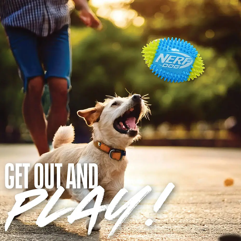 NERF DOG Hračka pre psov pískacia futbalová lopta so spikemi 15 cm