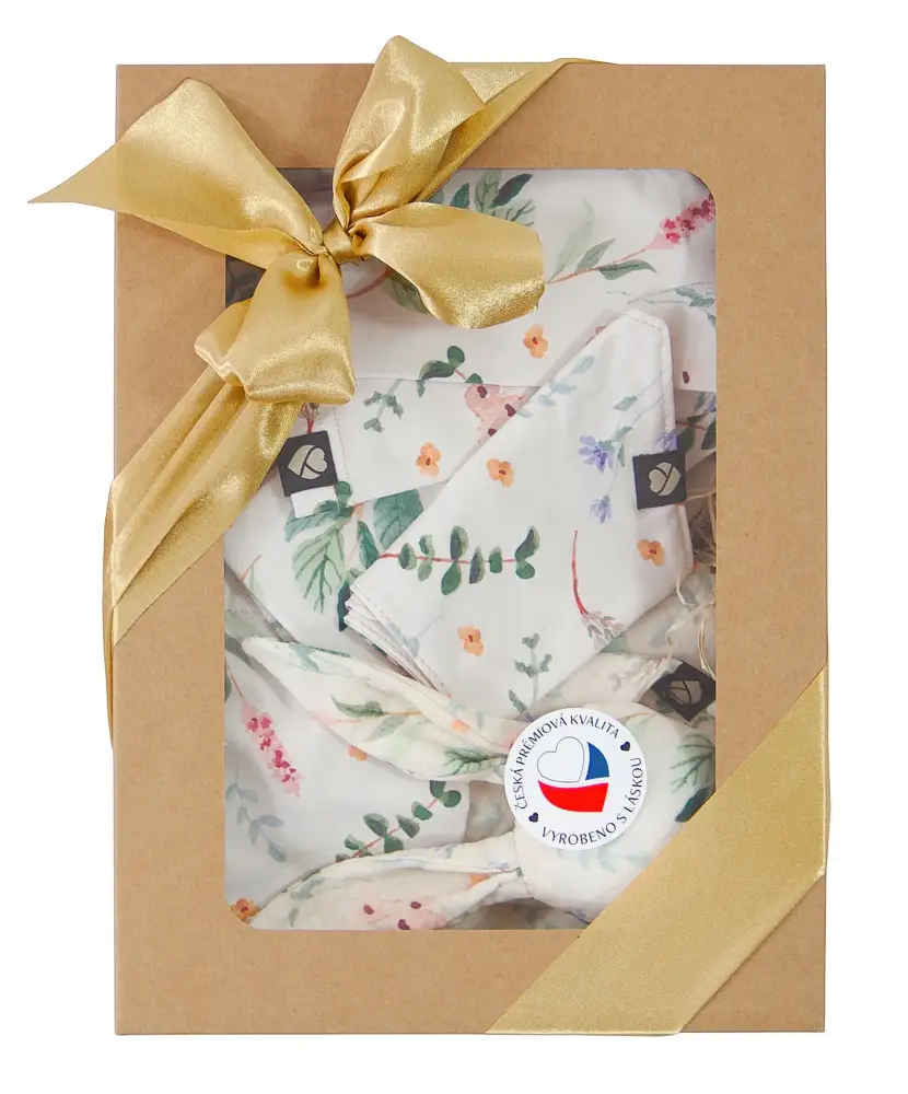 Privítanie nového člena rodiny je výnimočná chvíľa, a práve pre takéto okamihy sme vytvorili špeciálny novorodenecký balíček. Obsahuje všetko, čo malý uzlíček radosti potrebuje pre pohodlie a láskyplnú starostlivosť – legíny, čiapku, praktickú súpravu polstrovania, mäkučkého maznáčika, mušelínovú plienku, ľahkú letnú deku a roztomavý podbradník. To všetko v originálnom vzore, ktorý je výsledkom našej vlastnej tvorby s dôrazom na českú ručnú výrobu. Balíček prichádza v krásnom darčekovom balení, ideálnom pri narodení bábätka alebo ako čarovný darček pod stromček.