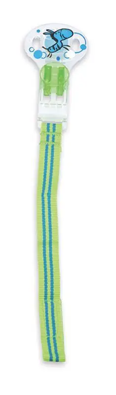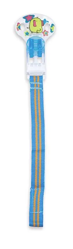 UPOZORNENIE: Pred každým použitím starostlivo skontrolujte. Vyhoďte ho pri prvých známkach poškodenia alebo slabosti. Nikdy nepredlžujte držiteľ cumlíka! Nikdy ho nepripevňujte k šnúrkam, stužkám, šnúrkam alebo voľným častiam oblečenia. Dieťa by sa mohlo udusiť. Držiteľ cumlíka by mal byť pripevnený len k odevu. Tento výrobok nesmie byť použitý ako hračka alebo hryzátko. Nepoužívajte držiteľ cumlíka, keď vaše dieťa leží v kolíske, posteli alebo kočíku. Používajte len pod dohľadom dospelej osoby. Nezviažte držiteľ cumlíka okolo krku dieťaťa, aby sa predišlo nebezpečenstvu udusenia. Neponechávajte ho vystavený slnečným lúčom alebo iným zdrojom tepla. Neponechávajte ho v dezinfekčnom prostriedku dlhšie, než je nevyhnutné (riadiť sa pokynmi na dezinfekčnom prostriedku).