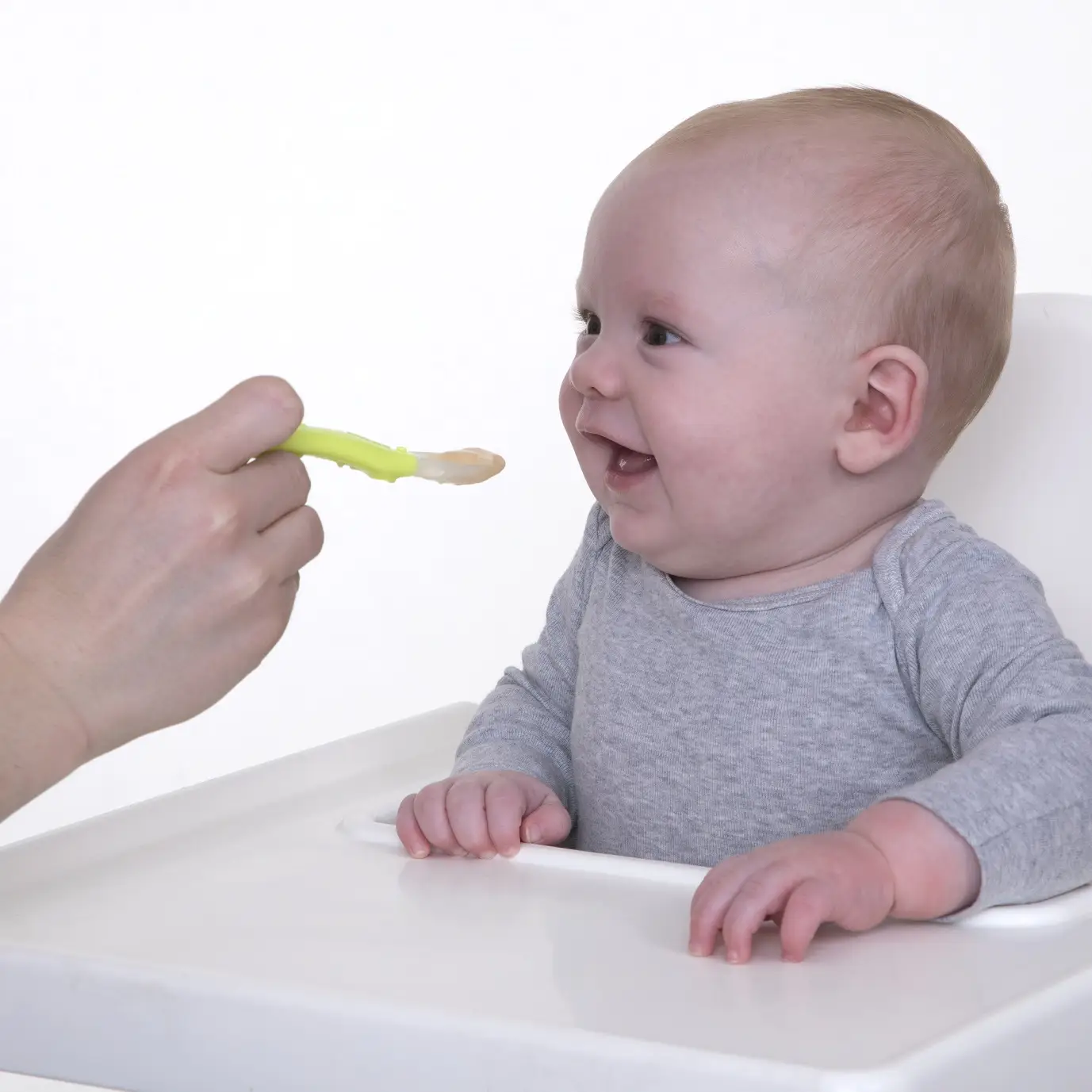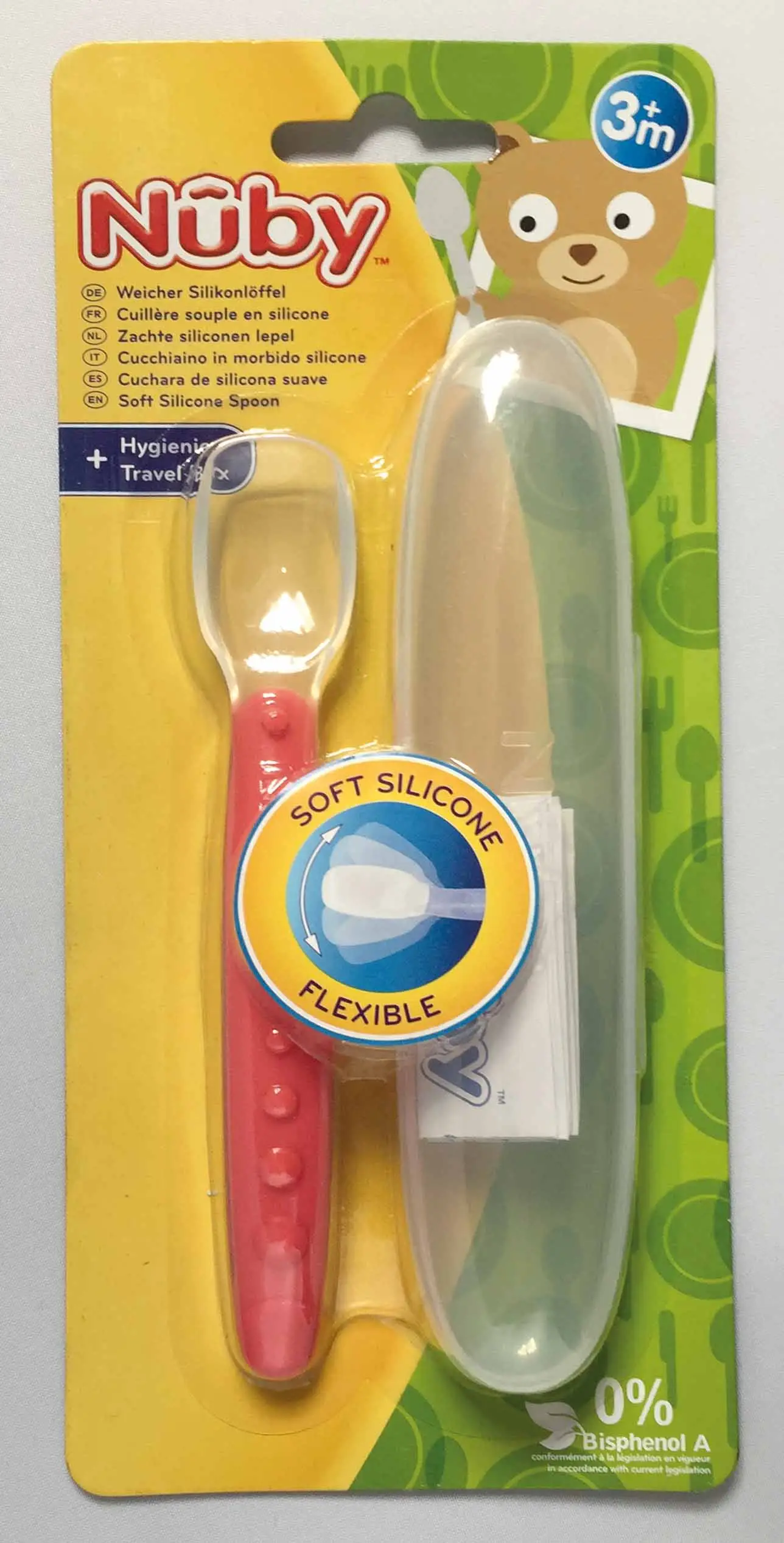 Produkt NUBY Lyžička silikónová s puzdrom 3 m+, žltozelená