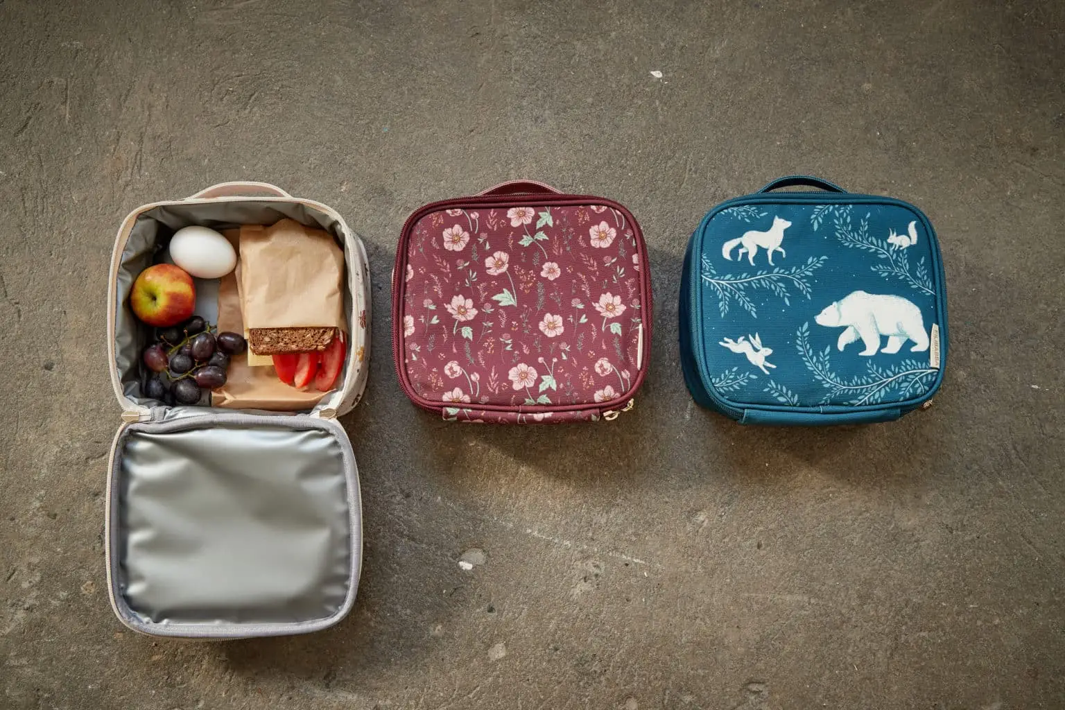 Na vonkajšiu tkaninu sme použili recyklovaný polyester RPET, ktorý je odolný a ľahko sa utiera. Tepelná vrstva je vyrobená z vinylu, ktorý v spojení s niekoľkými chladiacimi prvkami udrží jedlo vášho dieťaťa studené po mnoho hodín.