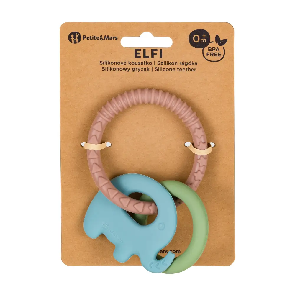 PETITE&MARS Hryzačka silikónová Elefi Velvet Latte 0m+